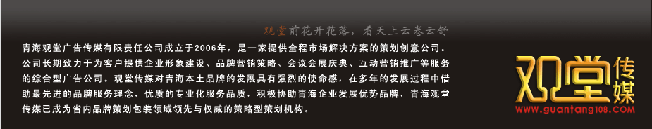 | 青海觀堂傳媒是一家專業(yè)從事西寧VI設(shè)計(jì),西寧畫冊設(shè)計(jì),西寧標(biāo)志設(shè)計(jì),西寧廣告設(shè)計(jì),西寧包裝設(shè)計(jì),西寧平面設(shè)計(jì),西寧宣傳冊設(shè)計(jì),西寧會(huì)議會(huì)展,西寧戶外廣告等類型的綜合廣告?zhèn)髅焦尽?div>地址:西寧市城西區(qū)黃河路14號(hào)威斯汀酒店8樓(城西區(qū)第三產(chǎn)業(yè)中心D008) 電話:0971-6111986 手機(jī):13734686000 Copyright 2006-2012 青海觀堂廣告?zhèn)髅接邢挢?zé)任公司 All Righths Reserved 備案信息:青ICP備13000327號(hào)-16 |